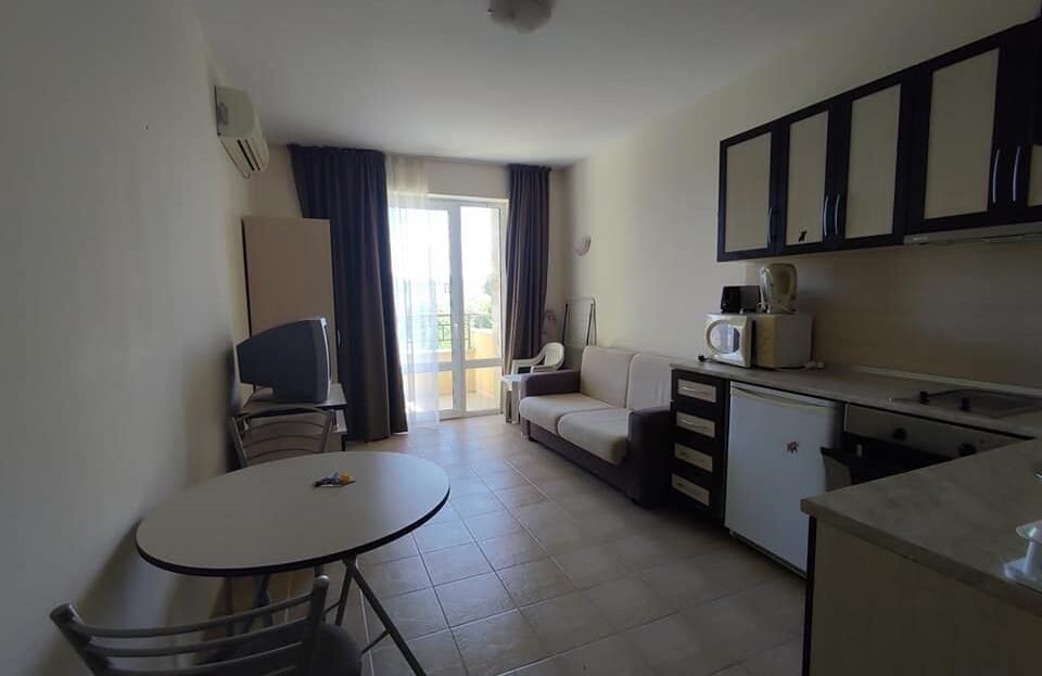 Предлагаме за продажба студио в затворен комплекс на брега на морето в село Равда. Разположен е на 2-ия етаж и има площ от 38 m². Гледка към морето, източна страна. Апартаментът се продава напълно обзаведен и оборудван. Комплексът е отворен през цялата година. Сградата разполага с асансьор. Акт 16. Електричеството и водата се подават с отделни измервателни уреди. От терасата се разкрива красива гледка към морето. Такса за обслужване 10 евро на кв.м.