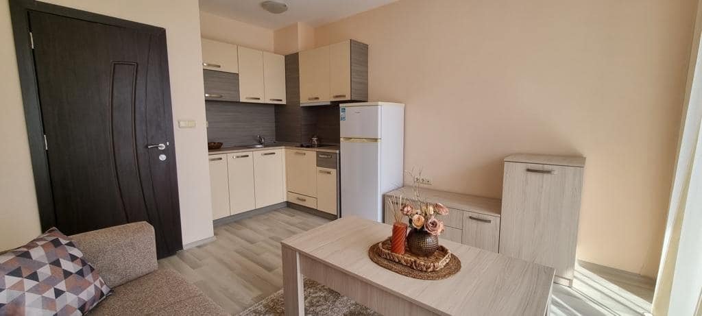 Предлагаме за продажба уютен и красив 3-стаен апартамент в комплекс Apollo – Несебър, Равда. Намира се на 5-ия етаж (не на последния), 94,33 кв.м. С директен изглед към морето и басейна. Състои се от дневна с кухня, 2 спални, 2 бани с тоалетна, едната с душ, а другата с параван, коридор и 2 тераси, едната от които свързва двете спални. Изложението от коридора с кухнята е на югоизток, а от двете спални – на северозапад. Жилището е в отлично състояние, никой не е живял в него, продава се с мебели и уреди, както е показано на снимката. Всичко вътре е ново. Във всяка стая има климатик. Оборудването е в много добро състояние. На разположение са басейн за възрастни, детски басейн, детска площадка, охрана, паркинг, супермаркет. Комплексът е напълно ограден и разполага със собствена система за разрешителни.