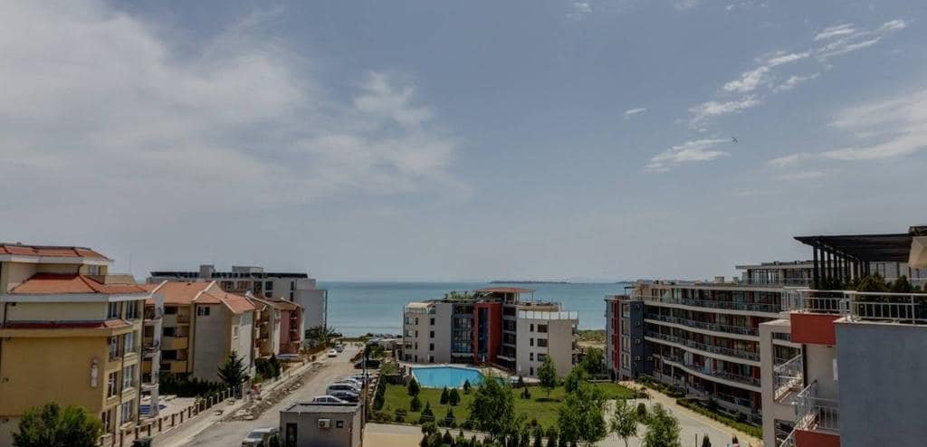 Предлагаем к продаже трёхкомнатную квартиру с видом на море в комплексе Sun Wave, Святой Влас. Квартира расположена на 5-м этаже, площадью 125 м2 с помещениями общего пользования. Панорамный вид на море. Продается без мебели и техники. Окна выходят на южную сторону. Квартира состоит из гостиной, кухни, коридора, 2 спален, 1 ванной комнаты с душем, туалета и террасы, которая соединяет гостиную с 2 спальнями.