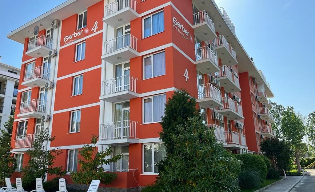 Предлагаем на продажу квартиру-студию в комплексе «Гербер 4» на Солнечном Берегу. Она расположен на 3-м этаже, площадью 29,40 кв.м. Окна выходят на северную сторону. Студия состоит из небольшого холла, кухонного уголка, спальной зоны, террасы, ванной комнаты с душем и туалетом. Продается без мебели, как на фото. В комплексе есть бассейн, небольшая детская площадка, круглосуточная охрана, видеонаблюдение, парковка. В здании есть лифт. Отдельные счетчики на воду и электричество. Усадьба небольшая, уютная, ухоженная, семейного типа, расположена в центральной части Солнечного Берега. Плата за поддержку составляет 10 евро за м2 в год.