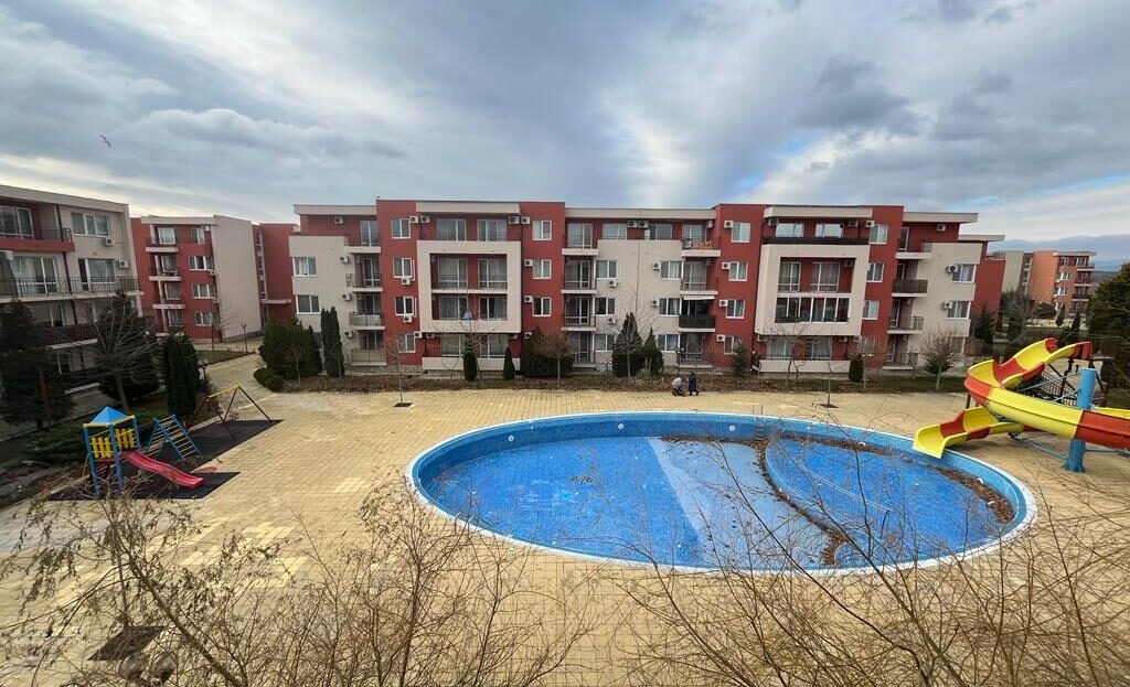Предлагаем на продажу студию в комплексе «Несебр Форт Клуб» — Солнечный Берег. Студия расположена на 2-м этаже, площадью 40,47 кв.м., состоит из коридора, спальни, кухонного уголка, террасы, ванной комнаты с душевой кабиной и туалетом. Студия просторная, теплая, в хорошем состоянии. Окна выходят на западную сторону. Оборудована всем необходимым для проживания – мебелью и бытовой техникой, как на фото. Комплекс большой и очень ухоженный. Здесь есть множество бассейнов, ресторан, рецепция, парикмахерская, салон красоты, открытый фитнес-центр, игровые площадки, видеонаблюдение, чип-доступ, охрана, круглогодичная уборка и обслуживание мест общего пользования. Лифта нет. Акт 16. Электричество в доме, отдельные счетчики электроэнергии и воды.