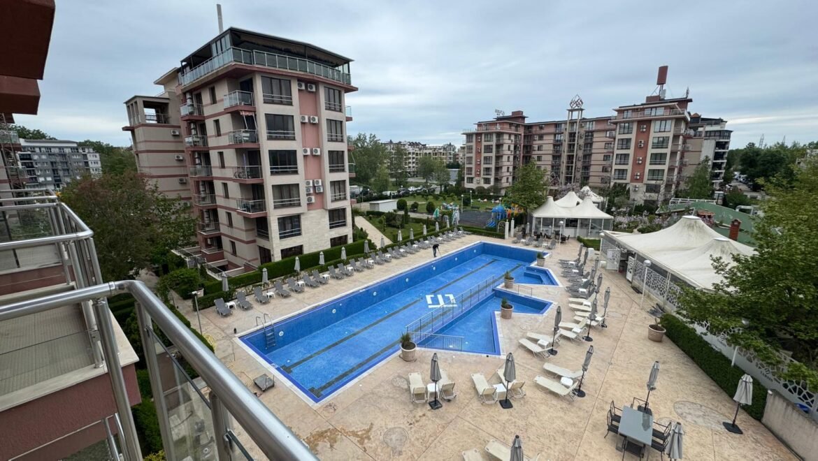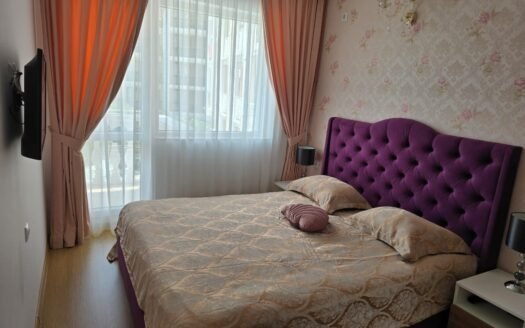 Квартира имеет площадь 70 кв.м и расположена на третьем floor.It состоит из коридора, гостиной с кухней, 2 спален, 2 террас и 1 ванной комнаты с душем и toilet.It продается полностью оборудованной мебелью и техникой. Полностью готова к проживанию. Квартира светлая, теплая и просторная. Комплекс относительно большой и хорошо maintained.It имеет 2 бассейна, СПА, ресторан, ресепшн, аквапарк, охрана, видеонаблюдение, зона барбекю, бесплатный трансфер каждые 20 минут до пляжа и обратно.